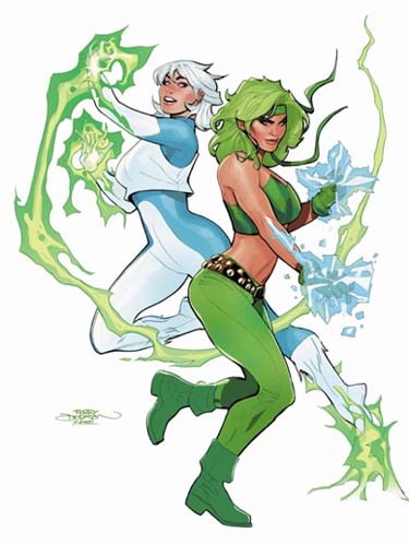 “The girls accidentally swap bodies in an attempt to correct the power mix-up that happened during Absolute Power,” continued Starer. “This Freaky Friday situation might be confusing if not for the brilliant art of Stephen Byrne. He’s created incredibly fun and distinct new character designs that make it VERY clear when Ice is in Fire’s body and vice-versa. The body-swap chaos is going to be a ton of fun for readers, but not for Bea and Tora.”