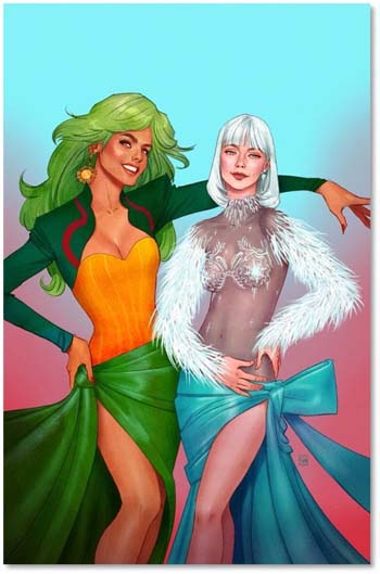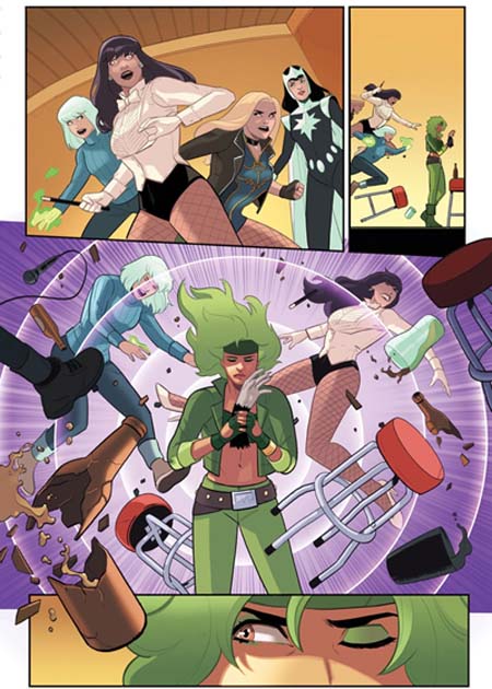 With their powers switched and no solution in sight, Fire and Ice tuck tail and regroup in Smallville, where they realize their predicament makes them something worse than has-been heroes: menaces to the local community they’ve come to love. But Fire’s always got a plan, no matter how shortsighted! And when she goes digging around in Zatanna’s bag of tricks for a quick fix in the middle of karaoke night…what could possibly go wrong? Aside from, y’know, everything. Again.