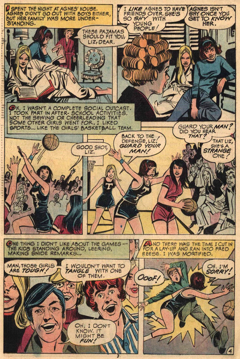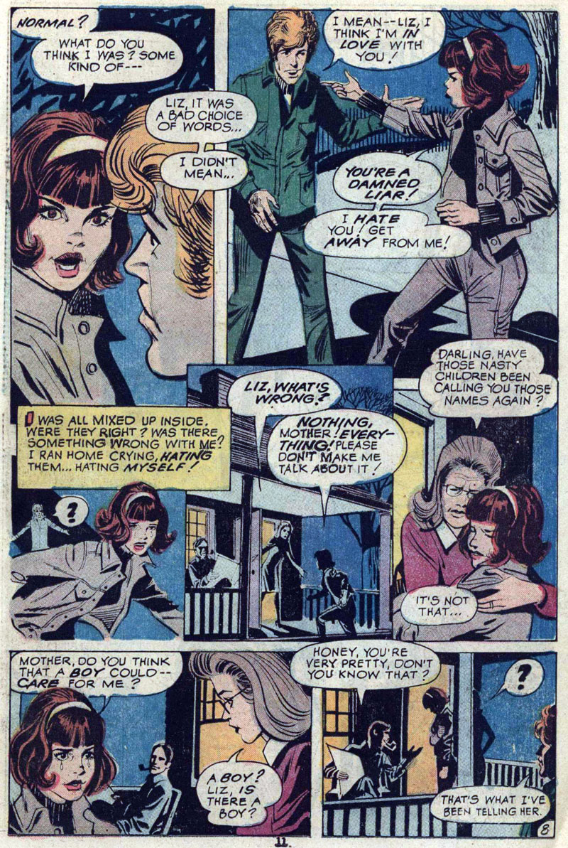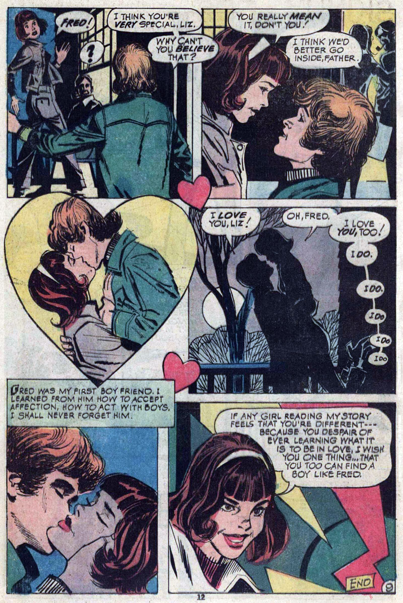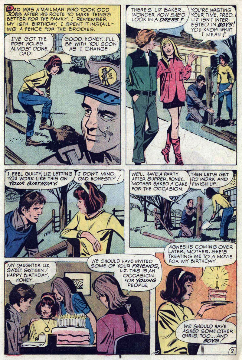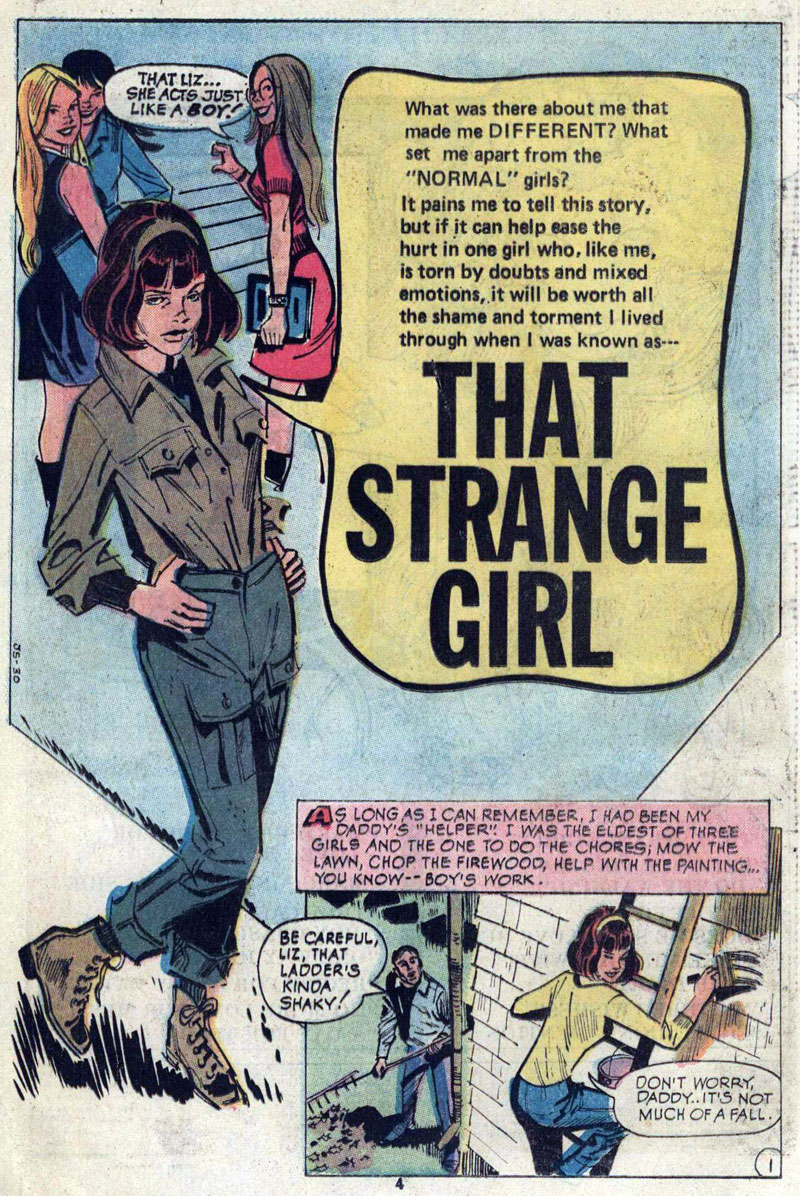 You may have seen scans of the short story “That Strange Girl” from Young Romance #197 floating around elsewhere on one of several sites. That’s how I came across them after a friend had mentioned the story to me, which in turn put me on a course to find a reasonably priced copy, and after a very long time I finally found one. In case you’re not familiar with this story I’ll tell you the reason it stands out from most of the other fare in DC’s stable of romance comics. Liz Baker is “that strange girl”, billed on the cover as “the story they dared us to print!” Liz’s story is to me a thinly veiled account of a teenaged girl who is trying to come to terms with being either lesbian or possibly bisexual, which is quite amazing when you consider the indicia’s publication date is Jan-Feb 1974 and it may have been in stores a little earlier, possibly December, 1973. This was 15 years before the Comics Code underwent its final revision allowing for LGBT characters to be included in comics and encouraged positive portrayals! Before 1989 words like gay, lesbian, and homosexual were forbidden by the Comics Code.This is the reason John Byrne wrote Maggie Sawyer’s stuttering “I’m a l-l-le–” dialog back in 1988’s Superman #15 (vol 2). Despite this restriction there are a handful of examples of instances that somehow made it by the board’s scrutiny. Just search the “Silver Age” tag to read the ones documented here.