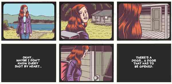 Like Daedalus and his son Icarus trapped in the maze of Daedalus’ design, Brian and Laurie are two figures trapped in their respective mazes finding themselves caught in each other’s life. Everything begins to change when Brian, Jimmy, Laurie, Tina, and a couple other friends take a trip to film scenes for Brian and Jimmy’s movie project. Having reached their destination — the mountain cabin belonging to Tina’s family — they’re greeted by a brightly shining sun, perhaps like the one that melted Icarus’ wings causing him to plunge to his death. Tina’s role surprisingly becomes pivotal to Laurie’s situation in such way that I won’t spoil it in the least for potential readers other than to say it is very satisfying and applause worthy.