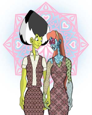 Becoming Able focuses on two of the closet monster cast from the first book: the crazy quilt patchwork Abigail and girlfriend Bethanie whose hair evokes Elsa Lanchester’s famous do in Bride of Frankenstein. Playing supporting roles are psychiatrist Dr Lentil Lowenstein and Abigail’s parents. Om the surface Abigail and Bethanie appear to be just another happy couple content in their daily rituals. However, in this fictional world closet monsters can still have problems of their own. So what happens when unresolved personal issues resurface? Older closet monsters serve as mentors to others who are newer to life in this new world. At least that’s the intention. Things turn out somewhat differently with Abigail when recollections of her former life and family memories on earth begin to consume here.