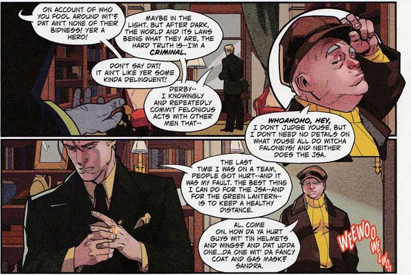 Writer Tim Sheridan and artist Cian Tormey have chosen the task of putting both Alan and Green Lantern into a new framework with familiar elements. The Justice Society is there of course because they go hand in glove. So too is Derby Dickles, AKA Doiby, who harks back to the time when several popular superheroes picked up comedic sidekicks as part of a comics trend to keep sales strong. No longer a caricature, Derby now reads as a street smart character in his own right and a friend who’s earned Alan’s trust with both his superhero identity and the truth about his sexuality, a truth that queer people in the decades before Stonewall went to great lengths to keep private out of genuine fear for having their lives ruined. Sheridan alludes to this when he has Scott expressing concern over being pressured by none other than FBI director J Edgar Hoover, infamous for his corruption and blackmailing efforts.