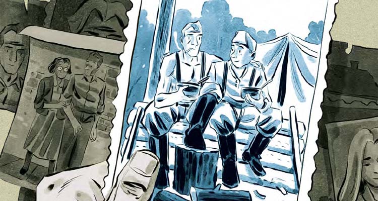 The look and feel of the period setting is captured perfectly by Lehmann’s elegant line work and grey washes. This is especially true of the sequences taking place during the 1940s and 1950s. Karl and the cast of characters are brought to life with a fluid, gestural energy that appears to be deceptively effortless. The style evoked pleasant memories from my youth of visits to my grandparents’ home and looking through slim hardcover books filled with the work of various cartoonists. All but two of those cartoonists’ names are lost to time: Charles Addams, most well known as the creator of the Addams Family, and Al Hirschfeld, famous for his celebrity caricature portraits. Those books gave me the first glimmer into both art being something more than 1960s style Dick and Jane children’s books as well as some small sense of the past, something more than the daily pop culture cartoon imagery of my childhood, if only from a generation or two before.