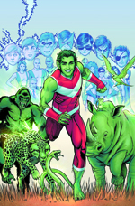 A multiversal nightmare unfolds as hordes of demonic hellamentals attack Spiral City, while dark heroes congregate in hell fearful of another onslaught by the world destroyer Anti-God. AUG231209
