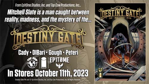 LOS ANGELES – July 11th, 2023 – Top Cow Productions, Inc., the company behind The Darkness and Cyber Force, announced today that it has partnered with EP1T0ME Studios, Inc. to co-produce and to publish Destiny Gate, a new horror, noir thriller series.