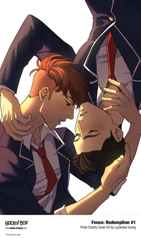LOS ANGELES, CA (June 7, 2023) – BOOM! Studios stands in support of the LGBTQ+ community and, this June, is offering a Pride Charity Cover for C.S. Pacat and Johanna the Mad’s FENCE: REDEMPTION #1, with colors by Joana LaFuente, and letters by Jim Campbell, exclusively through the BOOM! Studios webstore.