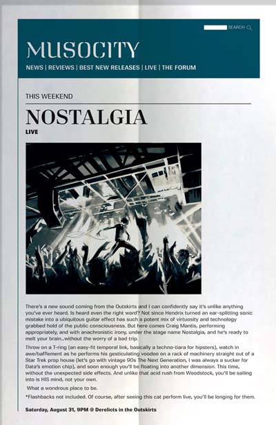 When a mysterious package with an image of a shell on it arrives at the unlisted address of Mr. Craig Mancini his interest is piqued. Mancini, also known as music performer Nostalgia, begins to reminisce about his past, ditches his tech and goes to meet the mysterious stranger behind the parcel. This encounter blows his mind and takes him down a path unraveling all that he knew to be true.