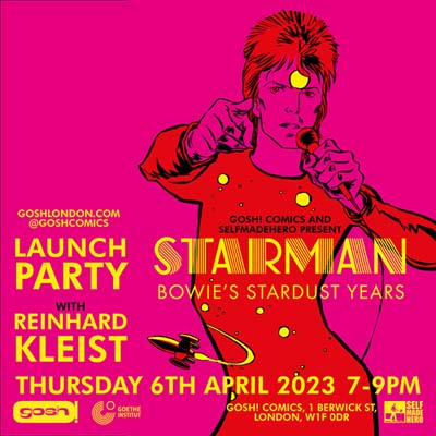 SelfMadeHero invites you to celebrate the launch of our new graphic novel STARMAN: Bowie’s Stardust Years, by Reinhard Kleist, at Gosh Comics on Thursday 6th of April from 7pm. Join us and Reinhard Kleist and get your signed copy of the book!
