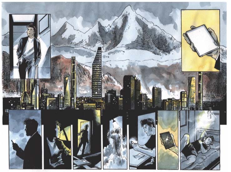 With the series set in the last days of the most haunted place on earth ravaged by a climate apocalypse, artist Andrea Mutti says, “I knew immediately that I wanted to contrast the warm and cold colors on the same page to reflect Ryan’s dynamic world. There is action, suspense, horror and evocative and extremely visual and powerful environments and characters!”