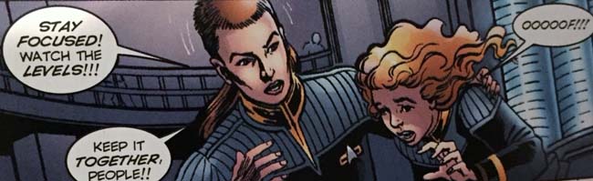 Cover art by Stephen Thompson from the Star Trek: New Frontier “Turnaround” mini series. The second art sample is by Michael Collins from the “Double Time” one shot special.