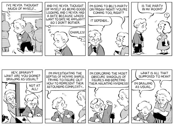 “Readers of Funny Things will delight in spotting the real-life inspirations and references to iconic Peanuts lore, such as Schulz’s love of baseball, classical music, a little red-haired girl, and a sweet black & white dog who might be wiser than any human,” says Top Shelf editor Leigh Walton. “But they’ll also get a profound sense of his religious faith, his understanding of loneliness, his immense ambition, and his rich family life.”