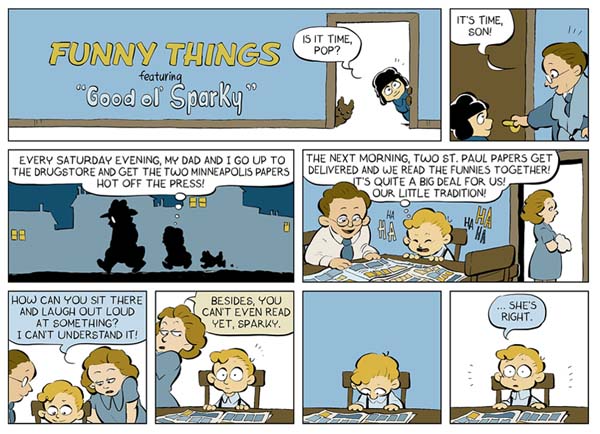 Starting with the last days of his monumental career, Funny Things jumps back and forth in time to narrate both Schulz’s artistic achievements and the personal episodes that formed him as an author and human being, ultimately shaping him into the most beloved cartoonist on the planet. From full-color Sundays to black-and-white dailies, every strip provides a laugh as well as a piece of insight into his remarkable life story. Filled with affection, charm, and poignant observation, Funny Things imagines Schulz through the lens of the very world he created, inviting us all to meet the man behind the blanket.
