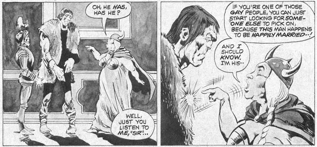 Another woman then appears to accuse Frankenstein of being a gay man preying on George who is indeed her husband. The predatory gay trope had already been in use in media for decades when Legion of Monsters appeared in 1975. Most surprising is the word “gay”. Before my reading The Monster and the Masque I’d presumed the first use of “gay” in mainstream comics to reference homosexuality was in Fantastic Four #251 (cover dated February 1983) by John Byrne. Technically speaking it may be still since Legion of Monsters was marketed and sold as a magazine in addition to being distributed differently from comic books. That’s a small and important difference because comics had been subject to Comics Code Authority censors since 1954 when the board was created. The CCA is to comics as the Hays Code was to movie and television studios from 1934 to 1968. If you ever wondered why Lucy and Ricky’s bedroom had two twin beds it’s because of the Hays Code. How “gay” in the Fantastic Four story slipped by the CCA censors is a curious question.