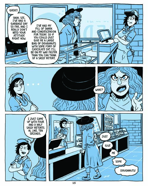 Doughnuts And Doom was made for the Young Adult market and I think it should appeal to readers who’ve enjoyed such fare as Cheer Up! Love & Pompoms!, Lumberjanes, or Fence. That said, being a certain age puts me well outside that target audience and I enjoyed it for the sass (oh my god do I love the sass!), romance, and good storytelling.