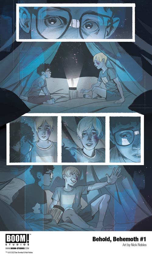 “Tate and Nick have created an epic that defies definition, full of psychological horror, apocalyptic destruction, and haunting personal discovery in equal measure,” said Eric Harburn, Executive Editor, BOOM! Studios. “If you’re looking for the book that will launch comics’ next two superstars…BEHOLD, BEHEMOTH.”