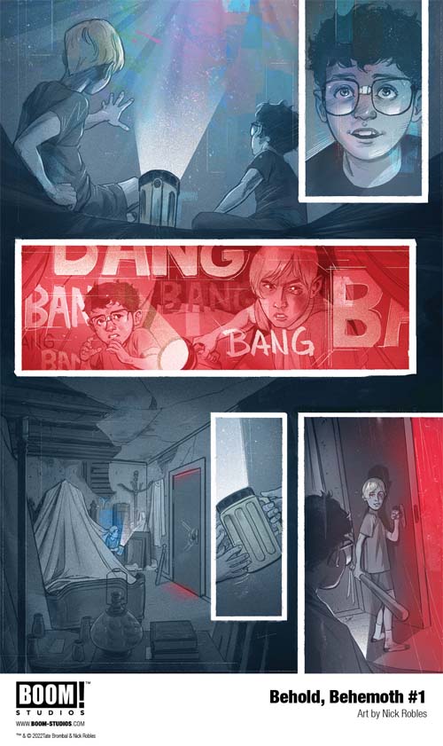 LOS ANGELES, CA (August 8, 2022) – BOOM! Studios announced today BEHOLD, BEHEMOTH, a brand new horror series from the bestselling House of Slaughter’s Tate Brombal, as he brings his first original series to BOOM! Studios alongside highly acclaimed artist Nick Robles (The Dreaming: Waking Hours), and letterer AndWorld Design (The Many Deaths of Laila Starr), about how a man’s fracturing world and monstrous nightmares foreshadow the unthinkable, in stores November 2022.
