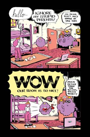 Experience all the fun of college (and none of the stress) in this giant-sized comic spectacular starring Princess Bubblegum and Marceline! What, do you think Ice King should get to have all the fun?! Heck nah! Fanfics are cool and all, but you know what’s even cooler? Peering into alternate universes—and Prismo’s got the perfect one in mind . . . Princess Bubblegum has just started school at Ooo University (double majoring in chemistry and princess, of course!). But between difficult roommates, overreaching bodyguards, assassination attempts, and—more importantly—a full class schedule, will Bubblegum be able to survive her first year in college?! With the help of one super-cool, super-mysterious flying vampire who she is mayybeee falling in love with, it shouldn’t be all that hard. Turns out Marceline and Bubblegum are made for each other in any universe!