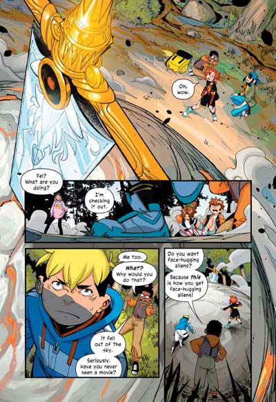 Young Fel, Connor, and their friends are stunned when they’re almost crushed by a giant stone falling from the sky. Their lives are changed forever when they find a sword stuck fast in the stone. Fel pulls the sword from the stone, her friends all receive their own Arthurian legend, and the game is on for a new generation of champions!