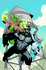 Fire and Ice can go to hell! And…they sure did, in dogged pursuit of a magical artifact that can finally set their body-and-power swap right. But they’ll find that hell is delighted to have two willing, living souls enter its fiery gates–with tests designed to break them down physically, emotionally, and spiritually waiting on the other side. Meanwhile a turbo-charged Gorilla Grodd lands in Smallville with murder on the mind…but his primary target, little sister Linka, is currently trapped in the body of the very human local bartender Charlie Rhodes! Will Smallville survive its wildest ruckus yet? 0525DC210