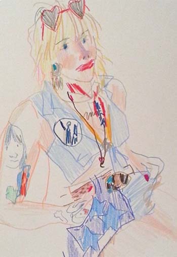 Horwitz chose to move to Portland, Oregon where they enrolled in Visual Studies department of the Pacific Northwest College of Art and earned an MFA in 2014. A number of solo and group exhibits in 2013 and 2014 featured Horwitz’s in various Portland venues. Not long after arriving in Portland in 2013 an idea an idea for promoting art occurred to Horwitz. With paper and art supplies in tow, Horwitz sat up at a variety of queer events. A simple “Get Drawn for Free!” sign caught the attention of curious people who were then put at ease by the very talkative artist. The portrait was indeed given free though with the hope the recipient would promote the artist in some way. The buzz made Horwitz a popular figure and toward the end of January 2014 the portraits numbered over 700. In an interview with Ann-Derrick Gaillot for Portland’s Streetroots, Horwitz reflected on that first event: “I was super nervous at first but it became apparent that people were having a blast and I drew from 7 p.m. until to 2 in the morning” and on the walk home “…that it felt like I was doing something right and should find a way to do it again.” When asked by Gaillot why people appreciated Horwitz’s drawing their portraits the artist responded: “…We talk about innocuous silly things, we talk about video games, we talk about “Adventure Time,” we talk about music and then we talk about heavy stuff every now and then. And I’m pretty open with people too when they ask about me. I don’t really censor it too much just because I feel like if I give a little then they feel comfortable to share.” The full interview may be read here.
