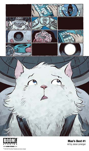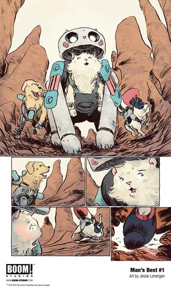 “It’s really weird to say a book about a cat in a mech suit, a golden retriever with a bionic leg, and a French bulldog with a rocket strapped to his back might be my most personal book ever, but…that’s kinda what happened? I’ve never written anything where I can see recent realizations in my life directly incorporated onto the page as much as this book and have no idea how readers will respond. What I’m a lot more confident in is how much of an honor it is to work with Jesse Lonergan. It’s amazing how as a ‘professional writer’ I still have no words to explain how innovative his art keeps getting with each issue,” said Pornsak Pichetshote.