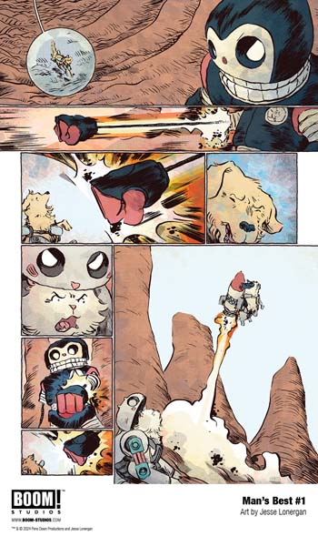 MAN’S BEST #1 will be available in comic shops March 20, 2024. It is available for pre-order at your local comic shop. Digital copies can be purchased from content providers, including Kindle, iBooks, and Google Play.